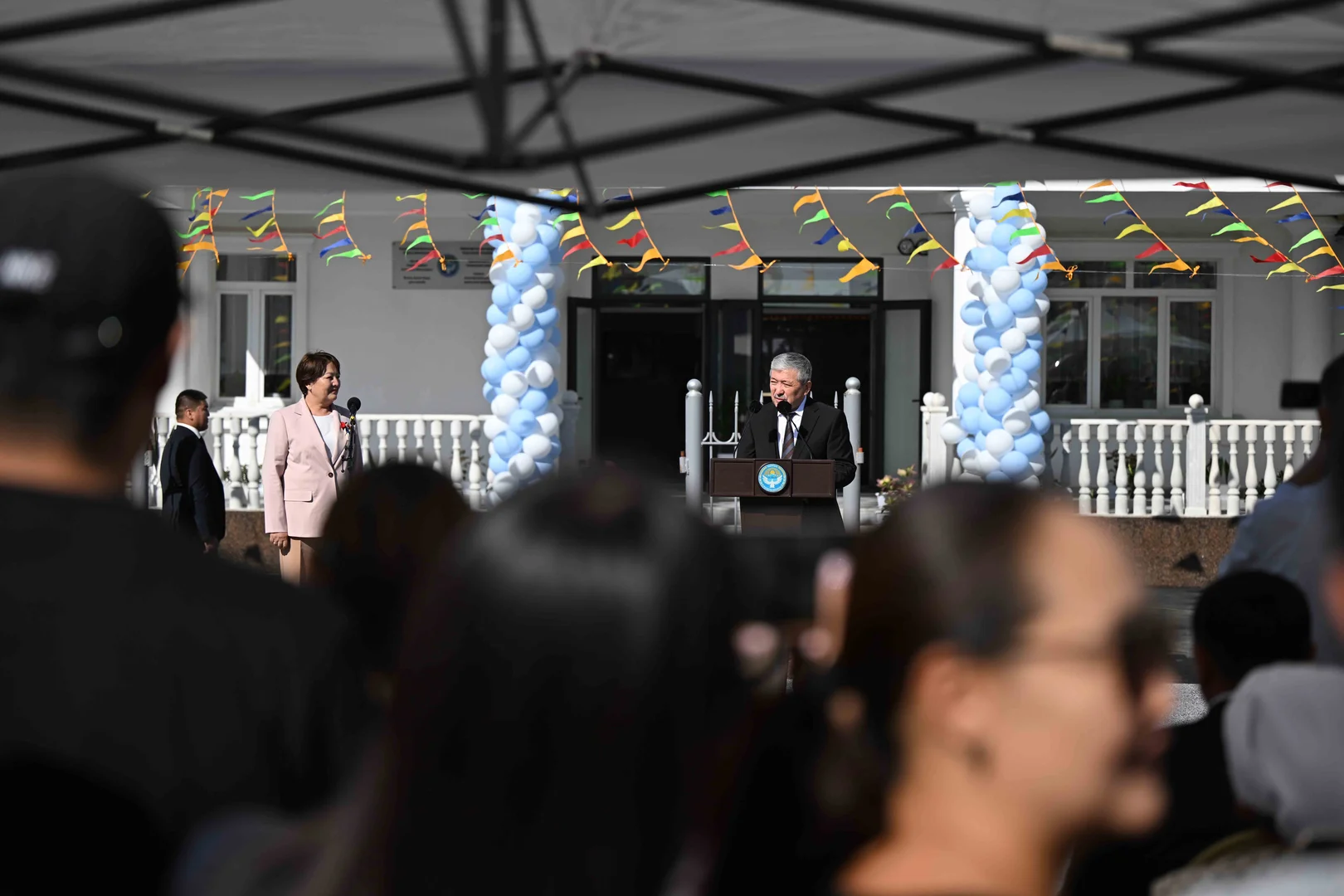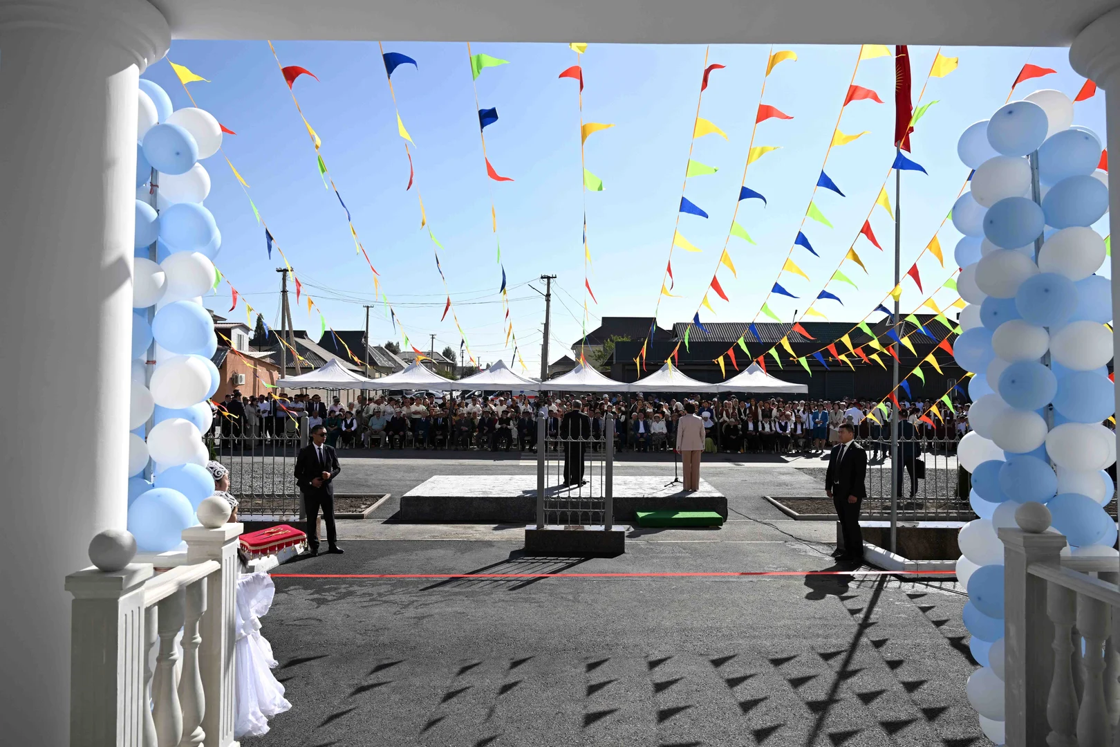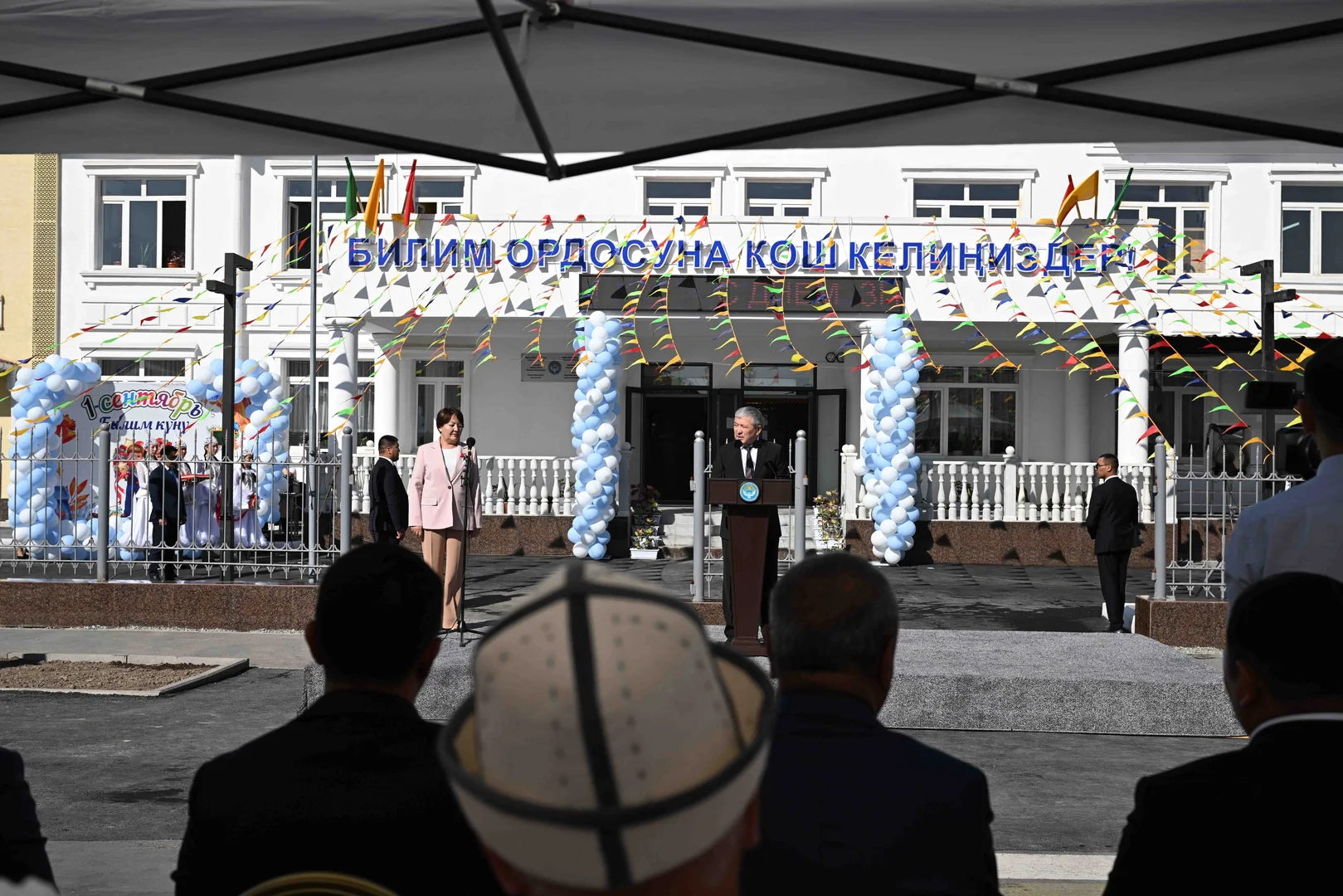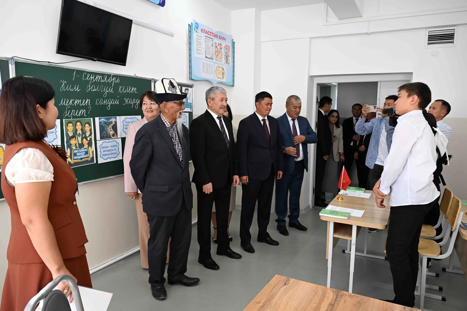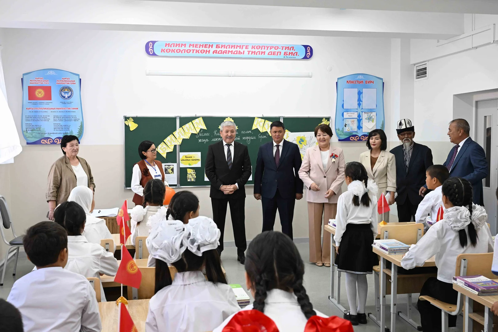 🎓 Кыргызстандын президентинин администрациясынын жетекчиси Адылбек Касымалиев Кожомкул айылындагы мектепте жаңы окуу жылынын башталышы жана Билим күнү менен куттуктады.